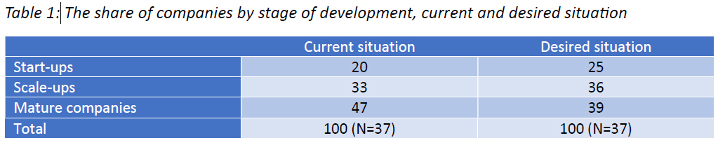 It is important to note that the study focuses on the number of companies. During a pilot survey, science park managers could not answer questions about the relationship between the three distinct groups of companies in terms of floor space or number of employees.